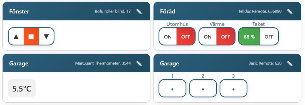 Nu kan du styra den genom att klicka på knappen. Har du den ansluten till Homey eller Home Assistant komemr dessa även att dyka upp där som knappar osv.